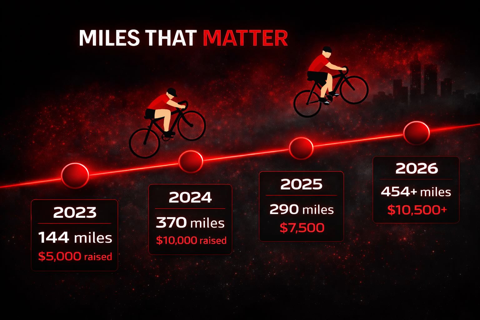 Now in 2026, we’re aiming higher than ever—targeting 454+ miles and $10,500+ as we continue riding, raising, and making a difference.
